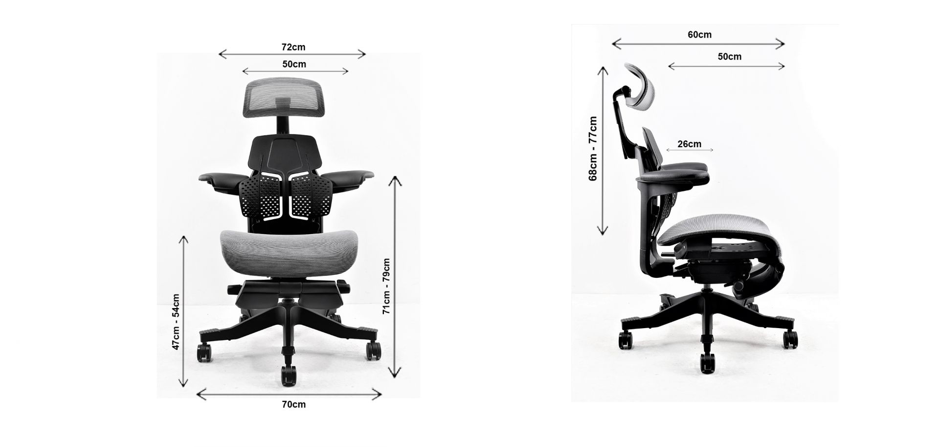 - Höhenverstellbare Rückenlehne durch den FlexLift-Stufenmechanismus, der die Lordosenstütze der Rückenlehne je nach Körpergröße und Körpertyp des Benutzers an die richtige Stelle bringt. Dadurch ist die absolute Ergonomie des Stuhls auch für sehr große Benutzer gewährleistet.