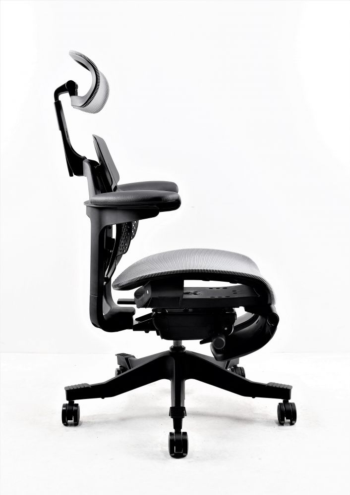 - Speziell entwickelte ergonomische Rückenlehnemit einem ausgefeilten Mechanismus, der die Wirbelsäule stützt,Core4Fit™ 4D support und die Funktion der menschlichen Wirbelsäule nachahmt. Die bionische Gestaltung des MechanismusCore4Fit™ 4D core support in Kombination mit den speziell entwickelten elastischen Kunststoffteilen stützt den Rücken des Benutzers dynamisch während der gesamten Nutzungsdauer. Darüber hinaus können sie mit Hilfe des Körperdrucks den Rücken sowie das gesamte System der Wirbelsäule dehnen.. Der obige Mechanismus sorgt in Kombination mit der Synchronmechanik für eine kontinuierliche Unterstützung des Körpers des Benutzers durch den Sitz.